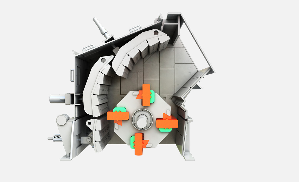 Ударно-отражательная дробилка изготовлена по новой технологии производства и обладает уникальной конструкцией, благодаря чему фракция готового продукта обладает правильной кубической формой без трещин и сколов. Она способна дробить различные материалы крупной, средней и мелкой фракции, такие как гранит, известняк, заполнители бетона, размер частиц исходного сырья которых не превышает 800 мм, а прочность на сжатие не превышает 350 МПа.