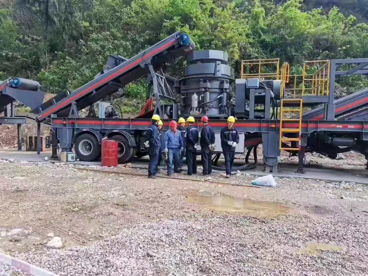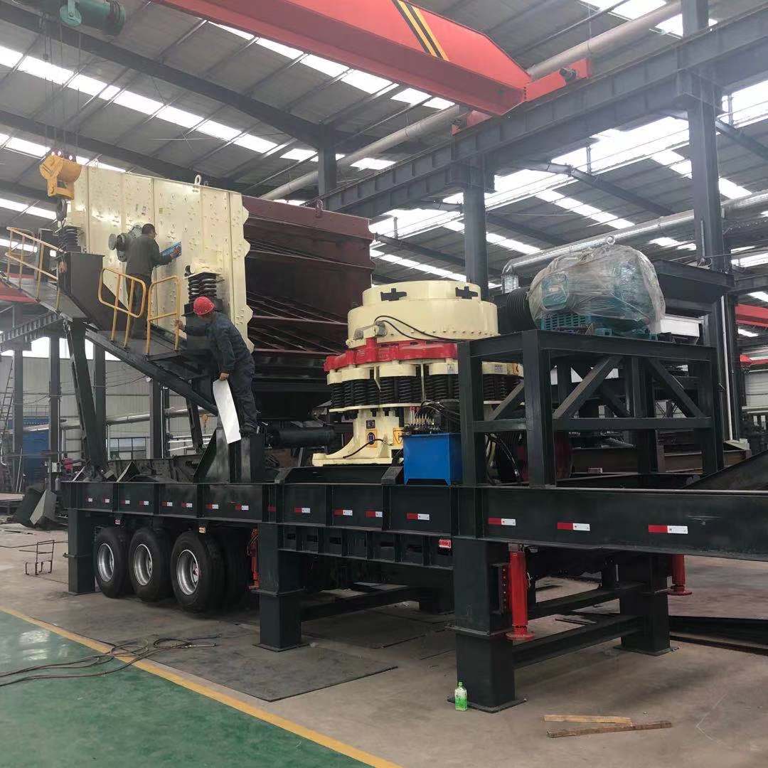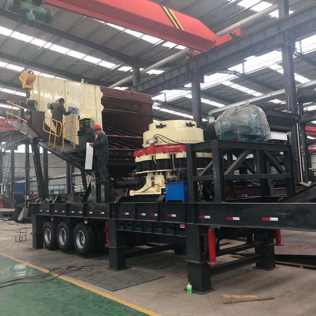 Материал равномерно подается в конусную дробилку с помощью питателя для предварительного дробления, затем материал поступает на виброгрохот для просеивания, образуя замкнутую систему. В конце материал выводится с помощью ленточного конвейера. Вы также можете демонтировать виброгрохот в соответствии с потребностями производства. Также мобильную конусную дробилку можно использовать вместе с другим дробильным оборудованием, чтобы добиться максимальной эффективности при минимальных трудозатратах.